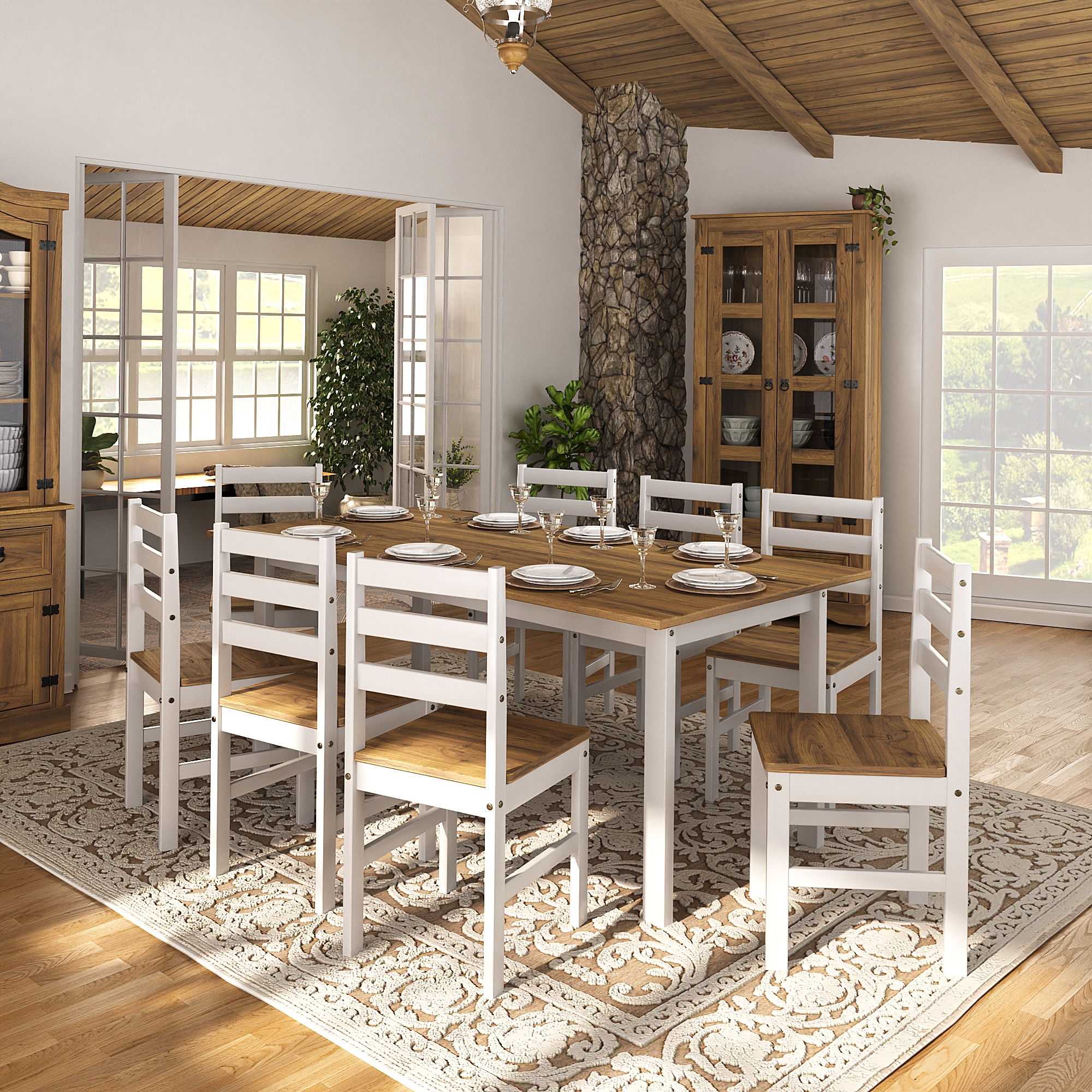 O Conjunto de Mesa com 8 Cadeiras de Madeira Maciça é a escolha perfeita para quem busca durabilidade, conforto e estilo atemporal em um único móvel. Produzido inteiramente em madeira, possui acabamento natural que realça os veios e tons da madeira, trazendo aconchego e elegância para sua sala de jantar ou cozinha. Com design simples e funcional, este conjunto combina facilmente com diferentes estilos de decoração — do rústico ao clássico — valorizando o ambiente com sua aparência autêntica e charmosa. As cadeiras oferecem assento confortável e estrutura firme, garantindo estabilidade e segurança no uso diário. 1 Mesa retangular de madeira maciça 8 Cadeiras de madeira maciça